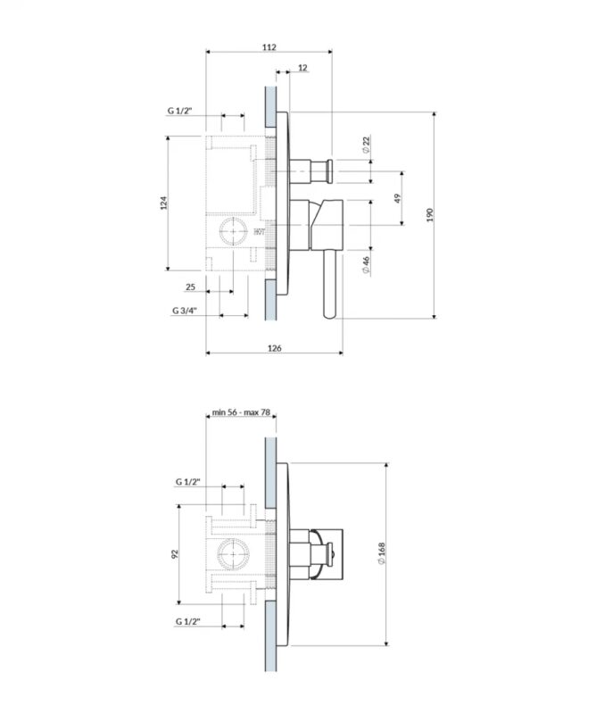 OMNIRES – Y podomietková sprchová a vaňová batéria, prvok na omietku, kartáčovaný grafit Y1235ROGR