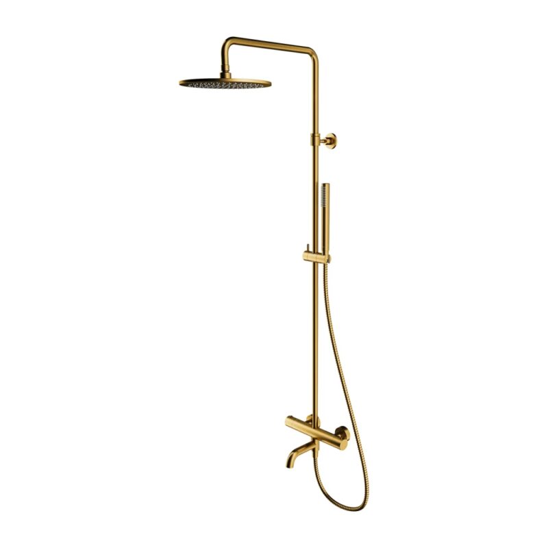 Kolekcia OMNIRES Y poteší svojimi čistými líniami a dokonalým tvarom, výrazom vášne v snahe o dokonalosť. Inšpiráciou a základom návrhu bol tvar kruhu. Nadčasový, dokonale prepracovaný vzor vytvorený v duchu minimalizmu poskytuje maximálne možnosti aranžmánov. Brúsené zlato je ušľachtilý povrch s elegantným odtieňom a moderným, saténovým povrchom. Obliečka bola vyrobená pomocou pokročilej technológie PVD. Dizajn: Janusz Langner, Štúdio OMNIRES termostatická vaňová batéria uzáver teplej vody na 38°C mosadzná dažďová sprcha, rozmer: ø25cm, dosah od steny: 42 cm rozsah sklopného výtoku: 20,6 cm ručná sprcha ( MICROPHONEX-RGLB ), 1-funk sprchová hadica s oceľovým krytom spínač dažďovej sprchy/rúčky zabudovaný do gombíka regulácie vody nastaviteľná výška, minimálna/maximálna výška systému: 113,5 cm/152 cm(GT) Ean: 5902539877908