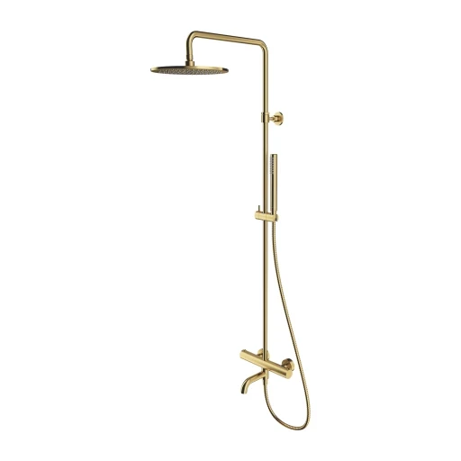 Kolekcia OMNIRES Y poteší svojimi čistými líniami a dokonalým tvarom, výrazom vášne v snahe o dokonalosť. Inšpiráciou a základom návrhu bol tvar kruhu. Nadčasový, dokonale prepracovaný vzor vytvorený v duchu minimalizmu poskytuje maximálne možnosti aranžmánov. Kartáčovaná mosadz má ušľachtilú povrchovú úpravu v odtieni studeného zlata a saténový, kartáčovaný povrch. Obliečka bola vyrobená pomocou pokročilej technológie PVD. Dizajn: Janusz Langner, Štúdio OMNIRES termostatická vaňová batéria uzáver teplej vody na 38°C mosadzná dažďová sprcha, rozmer: ø25cm, dosah od steny: 42 cm rozsah sklopného výtoku: 20,6 cm sprchová ručná ( MICROPHONEX-RBSB ), 1-funk sprchová hadica s oceľovým krytom spínač dažďovej sprchy/rúčky zabudovaný do gombíka regulácie vody nastaviteľná výška, minimálna/maximálna výška systému: 113,5 cm/152 cm(GT) Ean: 5902539877953