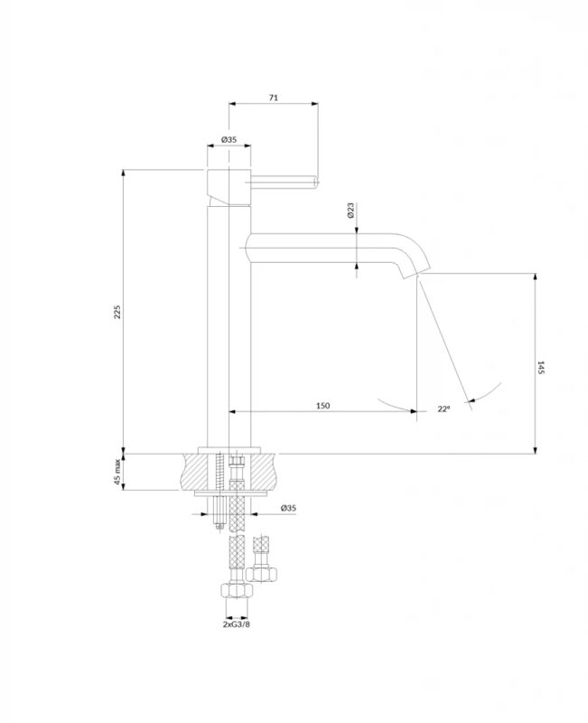 dosah výtoku: 15 cm