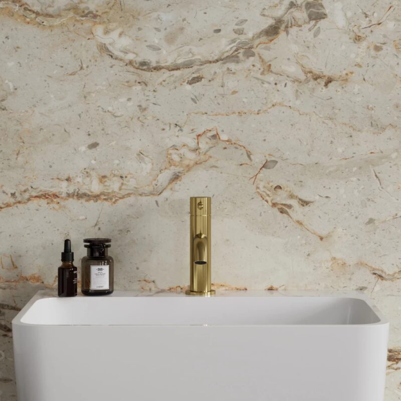 Brúsené zlato je ušľachtilý povrch s elegantným odtieňom a moderným, saténovým povrchom. Obliečka bola vyrobená pokročilou technológiou PVD.Dizajn: Janusz Langner, Štúdio OMNIRES