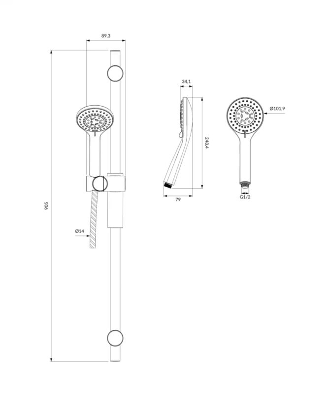 5-funkčná rukoväť, typ prúdu: masáž, hmla, vzduchový dážď, vzduchová masáž, vzduchová hmla oceľová sprchová tyč, dĺžka: 90,5 cm, rozstup upevnenia: 24–85 cm PVC sprchová hadica (SILVER-X175SL), dĺžka: 175 cm(GT) Ean: 5902539830064