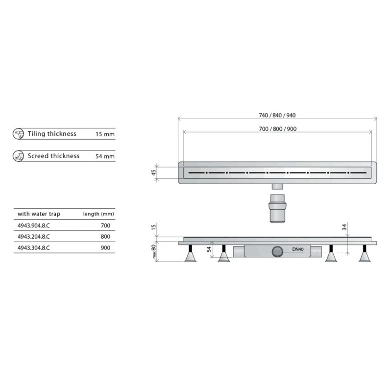Odpadové potrubie musí mať dostatočný spád, aspoň 2 cm/bm. Sprchové žliabky sú k dostaniu v rôznych dĺžkach. Starostlivo skontrolujte, či ste k vymedzenému priestoru zvolili správnu dĺžku kanálika. Ean: 8019952199269