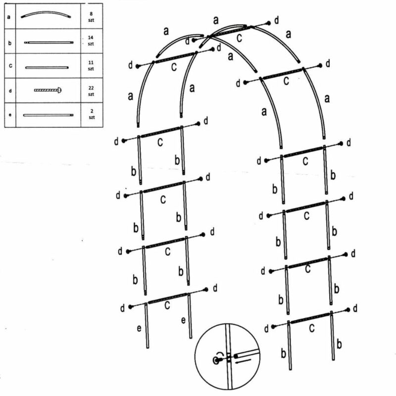 Vytvorte si v záhrade krásnu bránu z rozkvitnutých kvetov alebo popínavého brečtanu. Vaša záhrada bude najkrajšia široko ďaleko. Opora sa ľahko montuje.Oblúková podpera na pnúce kvety a popínavé rastliny, ktorú je možné jednoducho zostaviť a doplniť s ňou efektívne prázdne miesta v záhrade.Priemer rúrky pri opierke: 13 mmRozmery (v x š x h): 240 x 140 x 37 cmRozmer balenia (v x š x h): 54 x 20 x 4,5 cm