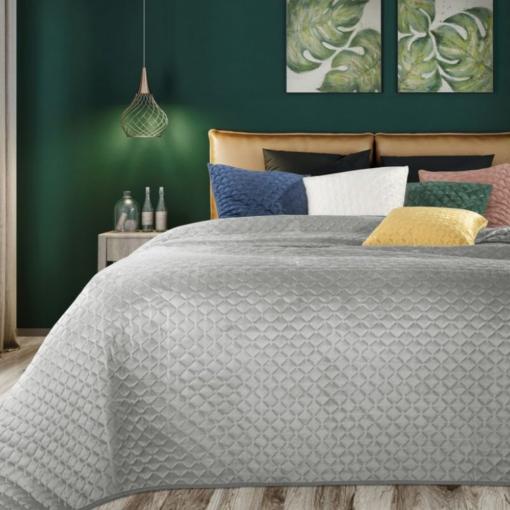 Originálny zamatový prehoz na posteľ striebornej farby Šírka: 220 cm | Dĺžka: 240 cm Šírka: 220 cm | Dĺžka: 240 cm