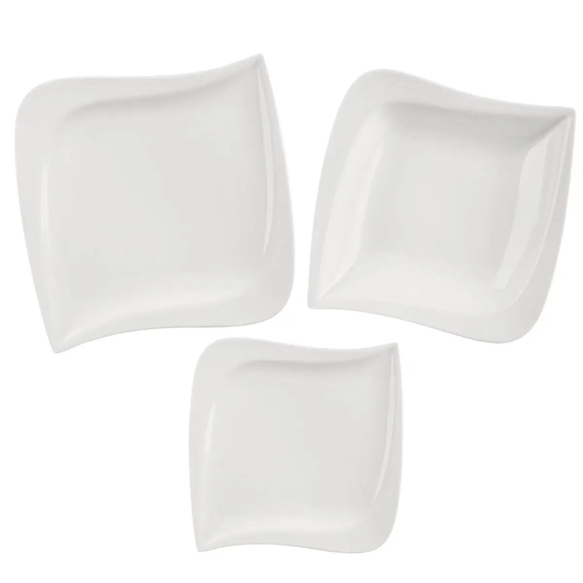 Taniere sú ozdobou každého stola. Nádherná jedálenská porcelánová súprava MONA MUSICA kĺbi čistú a jednoduchú eleganciu s moderným hranatým tvarom. Je tvorená šiestimi dezertnými, šiestimi hlbokými a šiestimi plytkými taniermi. Ich okraje sú mierne prehnuté a tvoria náznak vlny. Vhodné nielen na bežné, ale aj slávnostné stolovanie.Súprava obsahuje: