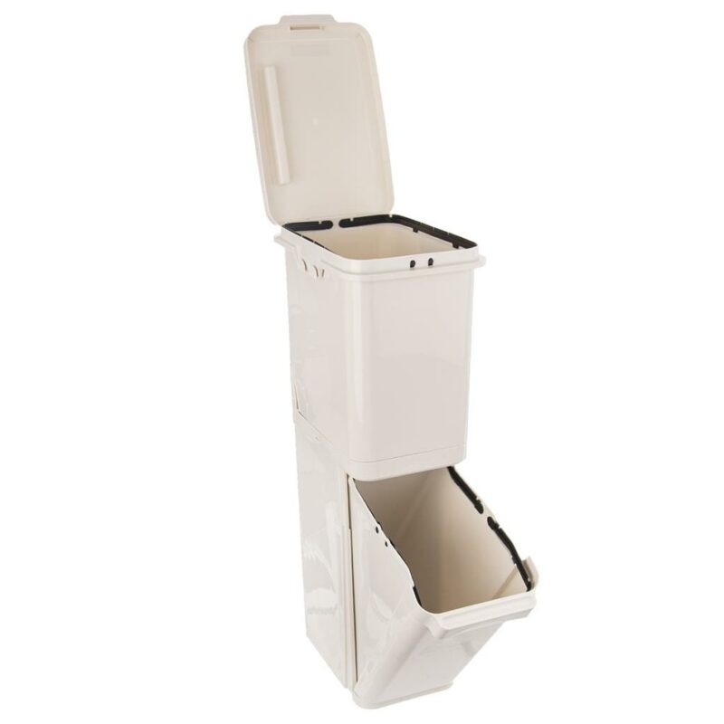 Dvojposchodový kôš na triedenie odpadu nájde svoje uplatnenie ako v interiéri, tak aj v exteriéri. Odpadkový kôš bol vyrobený tak, aby zjednodušil triedenie odpadu. Spodná časť koša disponuje výklopným korpusom koša, vrchná časť druhého koša sa plní odklopným vekom. Celkový objem oboch komôr činí 35 l
