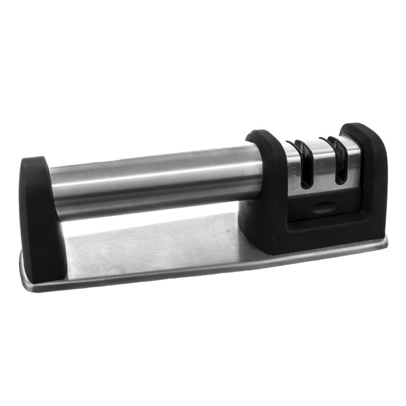 Brúska s kovovým a keramickým kotúčom je určená pre brúsenie tupých nožov i nožníc a následné dobrusovanie. K ostreniu slúži kovový brúsik, ktorým stačí nôž ostriť cca raz za 6 mesiacov, keramický brúsik používajte k dobrusovaniu 1x týždenne. Určené pre kovové a keramické nože, nožnice.