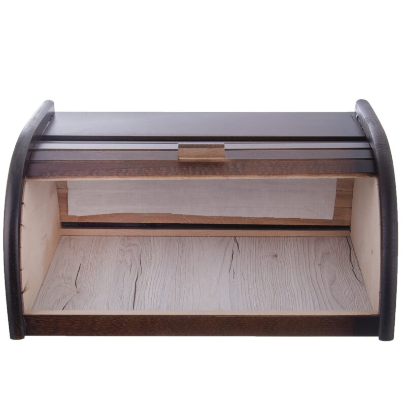 Chlebovka s posuvnou prednou časťou vám výborne poslúži na uloženie pečiva – chlieb v nej zostane čerstvý dlhšiu dobu a nebude naň sadať žiadny hmyz. Chlebník bude vďaka svojmu decentnému prevedeniu aj elegantným doplnkom v kuchyni. Materiál: bukové drevo.