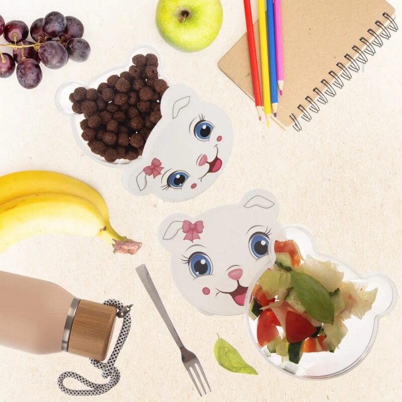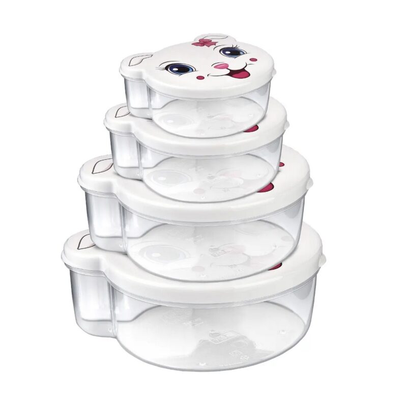 Orion desiatový box ZOO poteší svojím tvarom a motívom mačičky na viečku predovšetkým deti. Sada obsahuje 4 boxy s viečkom rôznych veľkostí. Mikrovlnná rúra aj umývačka riadu áno, ale bez viečka.Rozmery: