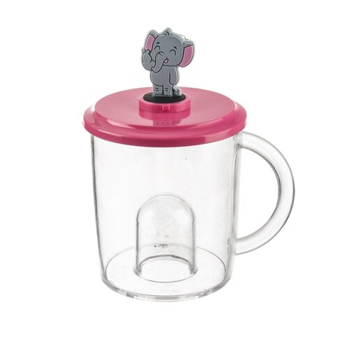 Hrnček s viečkom as figúrkou zvieratka poteší deti. Vo farebnom viečku je umiestnená figúrka, ktorá sa dá sňať a potom sa s ňou deti môžu hrať. Viečko slúži zároveň ako podtácka, ktorú pevne uchytíte na hrnček – teda keď nechráni nápoj pred hmyzom ako viečko, nikde sa nestratí, pevne drží na hrnčeku a figúrka je akoby vo vnútri nápoja.