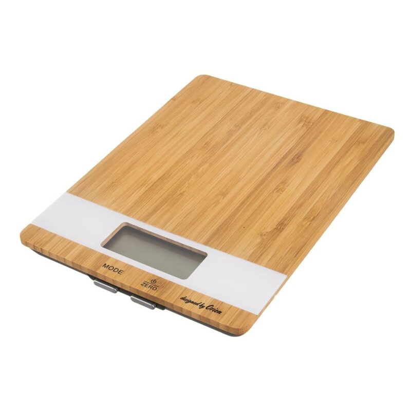 Elegantná a praktická kuchynská váha s digitálnym LCD displejom. Maximálna váživosť 5 kg. Ponúka možnosť voľby jednotiek: g/lb: oz/ml (pre mlieko i tekutiny) a funkciu TARE – dovažovanie. Vybavená presným tenzometrickým snímačom. Vďaka použitému materiálu sa ľahko udržuje. Indikátor slabej batérie a preťaženia. V prípade nečinnosti sa automaticky vypne. Napájanie na 2x AAA 1,5 V batériu. (nie je súčasťou). Vyrobené z bambusového dreva v kombinácii s plastom.