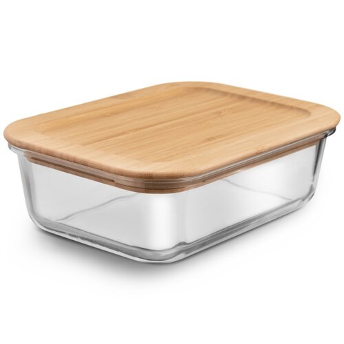Sklenená dóza s bambusovým viečkom je šikovným pomocníkom na uloženie, ohrievanie a zapekanie potravín. Viečko je opatrené silikónovým tesnením. Vďaka priehlbine vo viečku sú dózy stohovateľné. Borosilikátové sklo dózy je odolné vysokým teplotám, od –20 °C do 220 °C, nepreberá farbu, chuť ani arómu z uložených potravín a ani pri dlhodobom uchovaní potravín neovplyvňuje kvalitu potravín.V dóze bez viečka môžete pokrmy ohrievať v mikrovlnnej rúre a zapekať v klasickej rúre. A ak jedlo zostane, je možné uchovávať v chladničke. Sklenenú nádobu je možné umývať bez obáv v umývačke, viečko vďaka použitému materiálu umývajte v teplej vode so saponátom a nechajte vyschnúť.