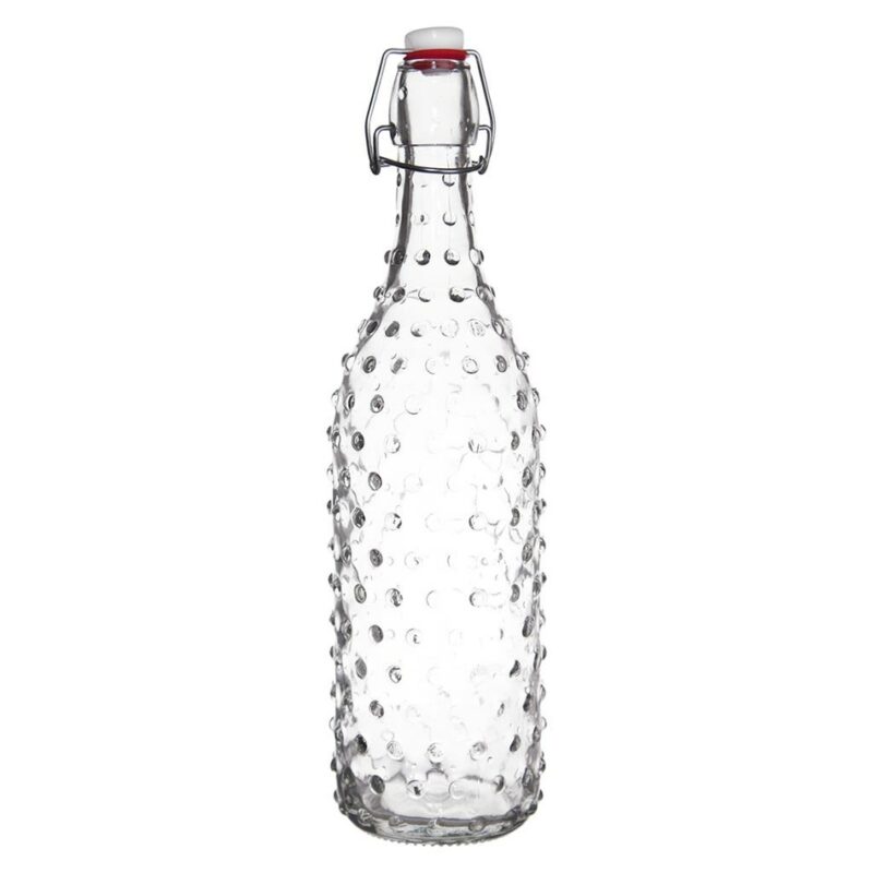 Ak robíte domáce likéry, sirupy, šťavy, malinovky alebo pálenky, táto sklenená fľaša IDA s objemom 1 l vyrieši vašu otázku s ich uchovaním a skladovaním.Silikónové tesnenie a uzáver na klip zaisťujú, že sa jej obsah len tak nevyleje. Vďaka svojmu plastickému dekoru drobných bodiek je to navyše nielen praktická, ale aj štýlová fľaša. Stačí ju preto naplniť vašim domácim výtvorom, ozdobiť farebnou mašľou a bude z nej krásny darček pre vašich najbližších.