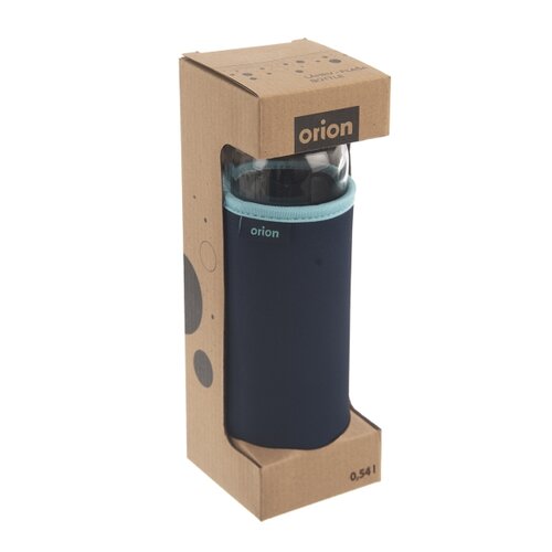 Fľašu z číreho skla, vložená do príjemného neoprénového termoobalu vo farbách Orion, ktorý chráni fľašu pred nárazmi a navyše udržuje nápoj dlhšie v požadovanej teplote, si určite obľúbite. Môžete si ju vziať so sebou do práce, na cesty, do auta, do fitka alebo na dovolenku. Má objem 540 ml a hodí sa napríklad na vodu s mätou, smoothie, iontový nápoj, limonádu či ľadový čaj.Výhodou je aj kovové viečko na závit a silikónové tesnenie, ktoré zaistí, že sa pripravený nápoj len tak nevyleje. Sklenenú časť je možné umývať v umývačke riadu, obal je možné prať v práčke na 30 °C jemným pracím prostriedkom, bez aviváže. Do fľaše je možné naliať vodu s teplotou max. 80 °C, do fľaše nelejte vriacu vodu.