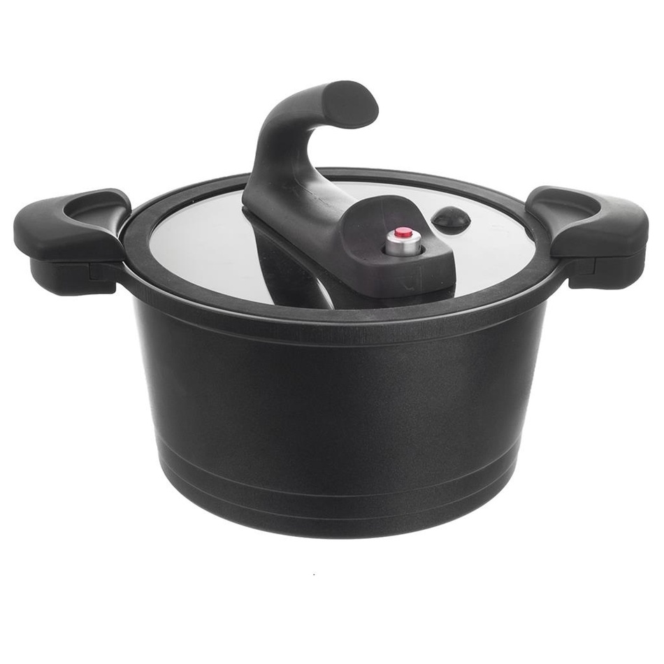 Nízkotlakový hrniec s pokrievkou šetrí energiu a skracuje dobu prípravy potravín. Pri varení s nasadenou a zaistenou pokrievkou sa znižuje strata pary na minimum. Časť pary vznikajúcej v hrnci kondenzuje na potravinách a svoju energiu tak odovzdáva pripravovaným potravinám. Ďalšia časť pary kondenzuje na samotnom hrnci a vo forme horúcej vody padá späť do hrnca. Vďaka tomuto procesu možno v hrnci variť s podstatne menším množstvom vody a tým sa spotrebuje až o 50 % menej energie než pri bežnom varení. Tiež dochádza k zachovaniu cenných látok v potravinách a rovnako tak je zachovaná vlastné chuť potravín.V pokrievke hrnca je umiestnený parný ventil, ktorý zaisťuje neustále vyrovnávanie tlaku medzi vnútrom hrnca a okolím. Vďaka tomu je už od začiatku varenia zabránené prípadnému nebezpečenstvu z dôvodu pretlaku, ktorý môže vzniknúť u tlakových hrncov. Pokrievka sa uzavrie posunutím hornej časti uší smerom k stredu. Pokrievku hrnca možno vďaka neustálemu vyrovnaniu tlaku kedykoľvek sňať a hrniec používať na klasické varenie.Energeticky úsporný hrniec je vhodný pre všetky druhy sporákov, teda plynové, elektrické, so sklokeramickou doskou a indukčné. Nie je určený pre použitie v rúre.Materiál: hliník s povrchovou úpravou – vo vnútri hrnca je 2-vrstvový nepriľnavý povrch, z vonku je vrstva PTFE, sklo, plast, nehrdz. oceľ, bakelit.