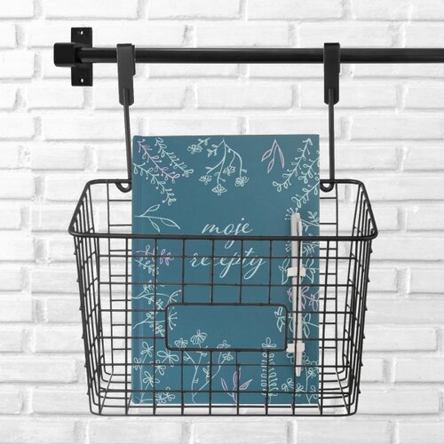 Štýlový kovový závesný košík na koreničky z kolekcie RADKA v čiernej farbe, ktorý možno po zavesení na tyč RADKA (pod kat. číslom 117862) využiť na uloženie koreničiek, dóz s dochucovadlami, kvetináčov s bylinkami alebo zošitov s receptami. Alebo ho stačí zavesiť na dvierka kuchynskej skrinky s hrúbkou do 2,5 cm.Vznikne tak praktický odkladací priestor a na pracovnej ploche budete mať dostatok miesta. Skvelo oživí dizajnové, minimalistické kuchynské linky, ale aj tie klasické, ktoré si zaslúžia trochu vyladiť.Odporúčame opatriť háčiky pod obj. č. 124346.