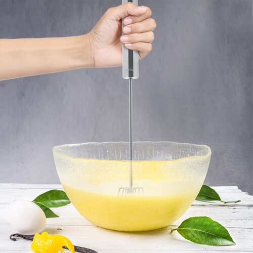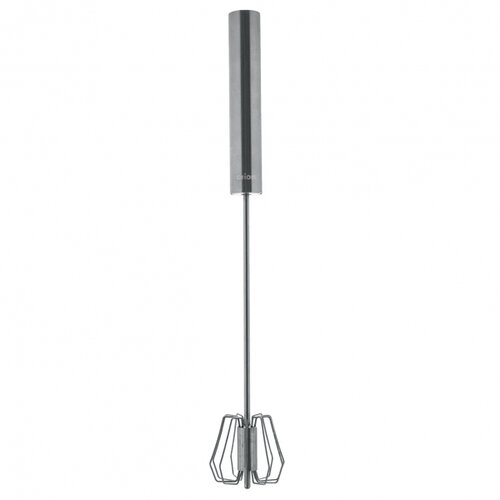Univerzálna nehrdzavejúca rotačná metla umožní bez námahy napeniť mlieko, ušľahať šľahačku či bielky, namiešať omeletu. Šľahanie je efektívne, navyše nie je potrebné pripojenie k elektrickej energii. Stačí ju jednoducho stlačiť smerom dole a šľahacia časť sa sama roztočí. Opakovaným pohybom dole a hore ju udržujete v neustálom pohybe. Vďaka malému priemeru šľahacej hlavice 6,5 cm ju využijete aj na šľahanie v pohároch a užších nádobách. Tak to roztočte.