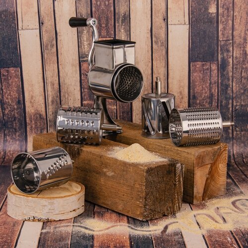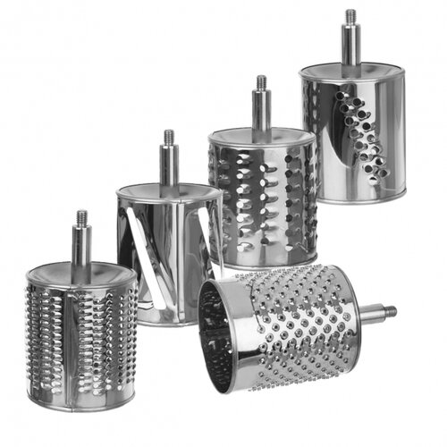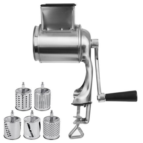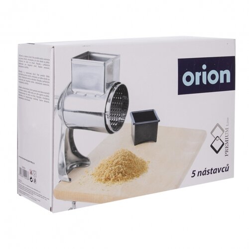 Mlynček s 5 nadstavcami, ktorý pomôže ľahko nastrúhať najemno strúhanku, piškóty, orechy, mandle, tvrdý perník, syr alebo uhorky na plátky. Má nehrdzavejúce telo s nadstavcami, mlecí mechanizmus je poháňaný ručne pomocou kľučky s plastovou rukoväťou.Násypka s veľkosťou 6 x 5 cm s prítlačným plastovým nadstavcom ochráni prsty pred poranením. Jednoduché zostavenie, manipulácia a údržba, stačí ho po použití umyť teplou vodou so saponátom a nechať riadne vysušiť. Max. hrúbka dosky, ku ktorej je možné strojček pomocou skrutky pripevniť, je 3,5 cm.