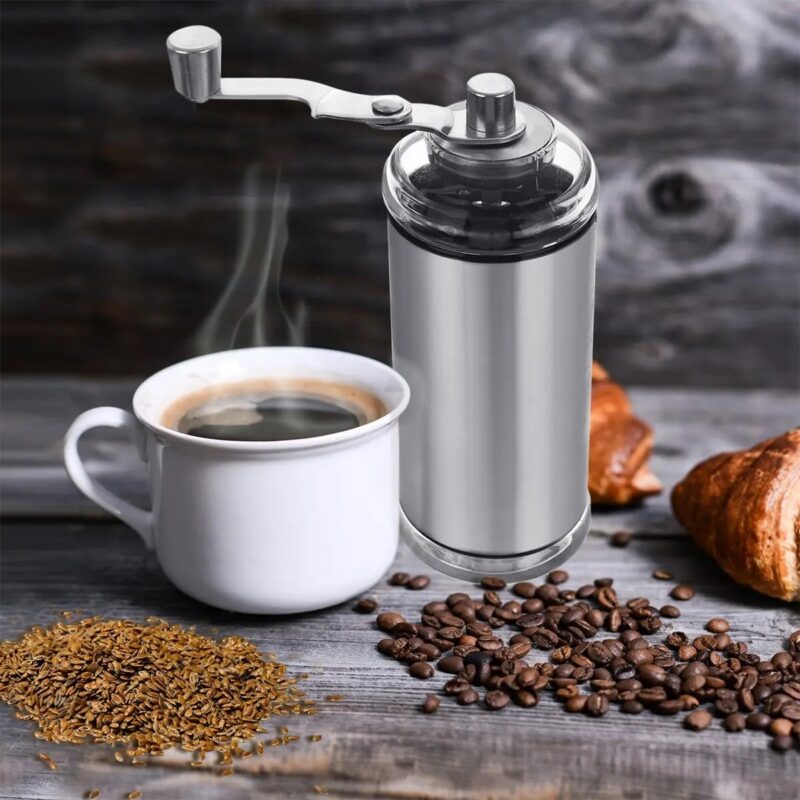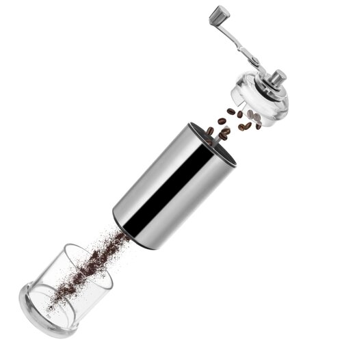 Ručný nehrdzavejúci mlynček na kávu moderného tvaru čerstvo namelie zrnkovú kávu. Bude to neporovnateľný zážitok oproti balenej mletej káve. Zaručuje ľahké a perfektné mletie kávy, aby ste si vychutnali arómu a chuť kávy doma, ale aj na dovolenke alebo v práci. Plnenie v hornej časti pod kľučkou, ktorá sa ľahko nasadzuje a sníma. Hrubosť mletia si môžete ľahko regulovať pomocou utiahnutia matky v spodnej časti keramického mlecieho mechanizmu. Keramický mlecí mechanizmus.