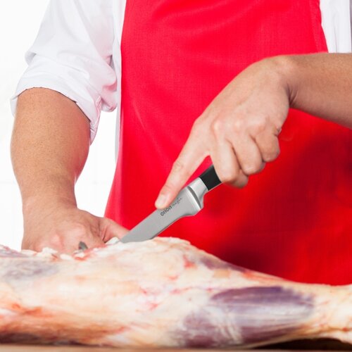 Kuchynský nôž z kolekcie Master nielen na profesionálne využitie sa bude hodiť pre vášnivých amatérskych kuchárov, domácich gurmánov a labužníkov. Nôž je dlhý 30 cm, čepeľ má dĺžku 15,5 cm a ostrie 13,5 cm.Vykosťovací nôž MASTER si vďaka charakteristicky zakrivenej, zúženej čepeli, poradí s vykosťovaním, rezaním mäsa od kosti, odstraňovaním šliach aj sťahovaním kože.Praktická ergonomická rukoväť sa veľmi dobre drží, nôž je vyvážený, prsty sú chránené vďaka prehnutiu v časti medzi rukoväťou a čepeľou.Vlastnosti: