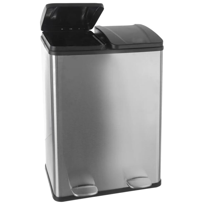 Chystáte sa triediť odpad, ale nemáte zatiaľ správne vybavenie? Tento dvojitý odpadkový kôš z nehrdzavejúcej ocele s objemom nádoby 30 l je ideálnym pomocníkom pre domáce triedenie.Otvára sa pomocou nožného pedála, čo zaručuje väčšiu hygienu a pohodlie.Materiál: kvalitná nehrdz. oceľ, plastové veká. Odpadkový kôš tvoria 2 nádoby, každá s objemom 30 l.