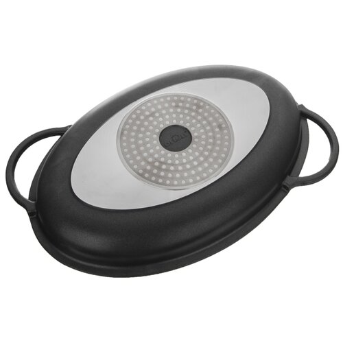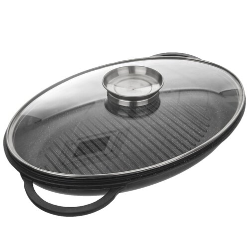 Pekáč GRANDE s profilovaným dnom využijete ako klasický pekáč na prípravu mäsa, ako panvicu na pečenie i vyprážanie alebo ako arómu pekáč s pokrievkou. Sklenená pokrievka s aróma úchytom umožní jemné dávkovanie tekutých dochucovadiel – olejov, vína… bez nutnosti odklopenia pokrievky. Dochucovadlo nalejete do úchytu a ono samovoľne preteká cez otvor dovnútra do pekáča.Pekáč je opatrený vo vnútri veľmi kvalitným nepriľnavým povrchom PFLUON GRANIT v 2 vrstvách, ktorý vám umožní prípravu jedál na minimálnom množstve tuku. Z vonkajšej strany je jedna vrstva kvalitného nepriľnavého povrchu PTFE. Vďaka úprave vonkajšieho povrchu môžete pekáč použiť na všetky typy tepelných zdrojov vrátane indukcie a do rúry – sklenená pokrievka max. 200 °C, pekáč max. 230 °C. Výhodou sú mimostredne umiestnené úchyty, vďaka ktorým sa pekáč pohodlne zmestí do rúry.Materiál: zliatina hliníka s veľmi kvalitným nepriľnavým povrchom, sklenená pokrievka s nehrdzavejúcim aróma nálevkou. Výhodou je jeho ľahkosť a ľahká manipulácia. Rozmery: vnútorné 38 x 25 x 5 cm, vonkajšie 43 x 30 x 5,5 cm, celková výška 10 cm.Pri manipulácii odporúčame používať kuchynské chňapky. Vhodný do chladničky, do umývačky riadu – vplyvom agresívnych čistiacich prostriedkov môže dôjsť k nepatrnej oxidácii dna – tento jav nemá vplyv na proces varenia, nie je zdravotne závadný a nemôže byť predmetom reklamácie.