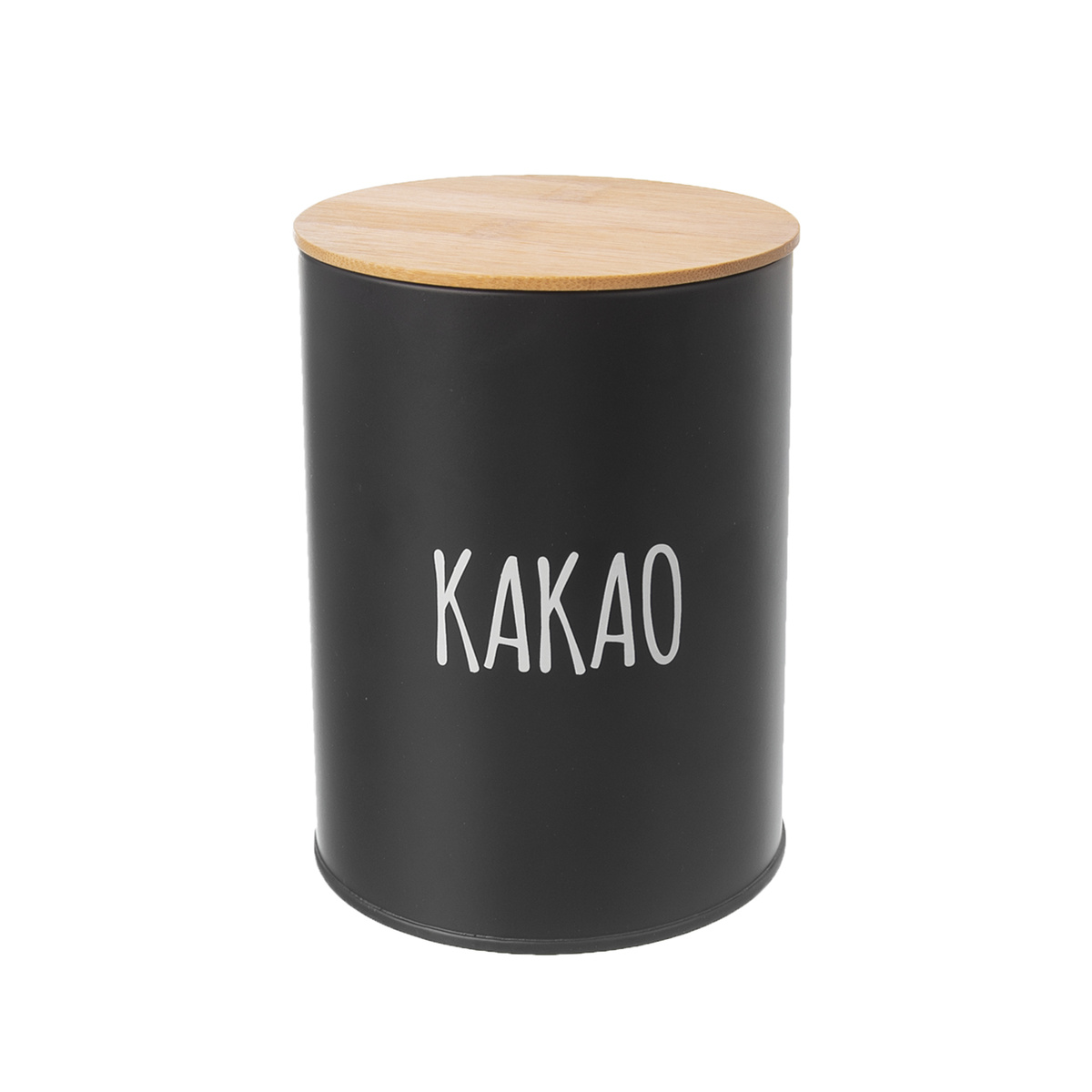 Ak hľadáte vkusné doplnky do kuchyne, kúpte si plechové dózy s matným čiernym povrchom. Tieto produkty z kolekcie BLACK pomôžu s organizáciou a upratovaním vašej špajze.Biely nápis KAKAO okamžite prezradí, aký obsah plechovka ukrýva – či už teda preferujete sladké Granko, holandské kakao alebo radšej jeho RAW formu, táto dóza bude skvelým miestom na jeho uchovanie. Súčasťou je aj viečko z bambusového dreva, ktorého silikónové tesnenie zaručuje, že sa obsah nevysype, kde nemá.