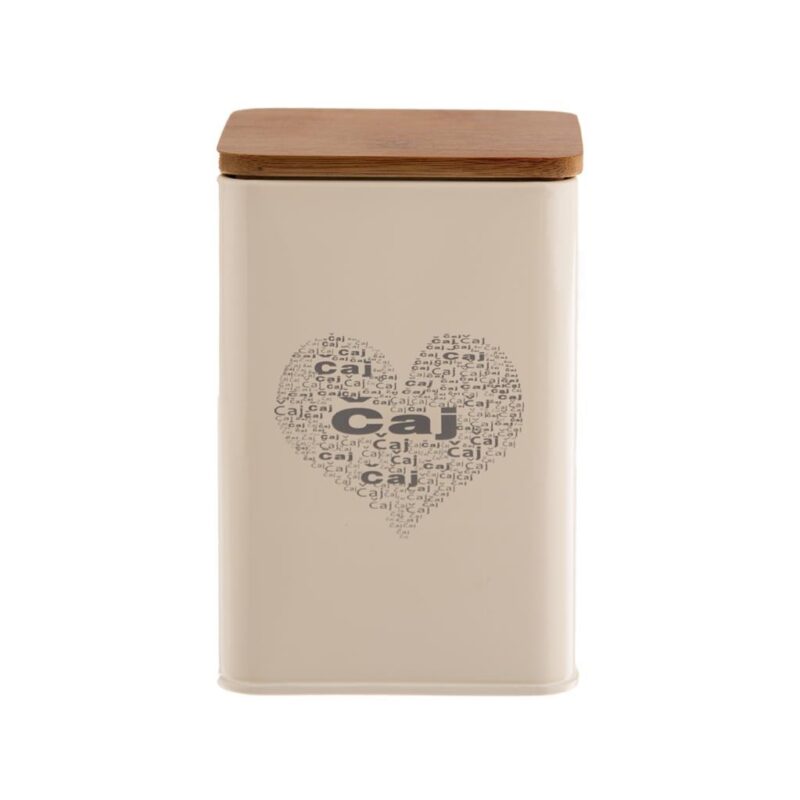 Plechová hranatá dóza s dreveným viečkom je vhodná na uloženie čajových vrecúšok alebo sypaných čajov. Dóza s jemným dekorom srdiečka je nielen praktická, ale zároveň aj pekná dekorácia v interiéri.