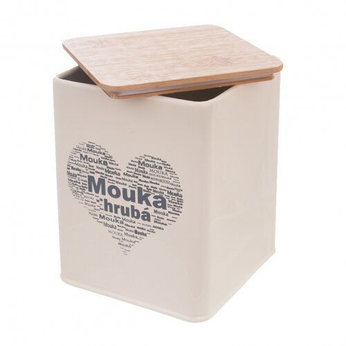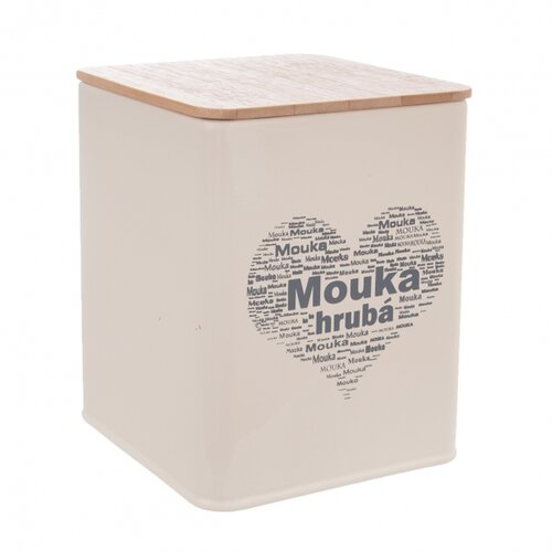 Dizajnová hranatá plechová dóza so štýlovým nápisom Hrubá múka v tvare srdca pre uskladnenie phrubej pšeničnej múky, vhodná napr. na prípravu domácich rezancov, knedlí alebo halušiek. Tejto smotanovej dóze sa jednoducho nedá odolať.Pohodlne sa do nej vojde celé balenie múky, bambusové viečko so silikónovým tesnením ju uzavrie, zamedzí tak zvlhnutiu a ochráni obsah pred hmyzom. Navyše sa odporúča skladovať múku v suchu a tme, takže aj na kuchynskej linke máte istotu, že bude jej kvalita zachovaná. Stane sa nielen praktickou nádobou na uloženie sypkých potravín, ale aj štýlovým kúskom, ktorý zútulní interiér kuchyne.