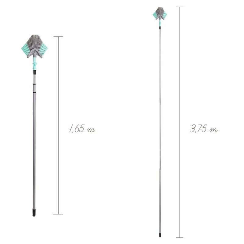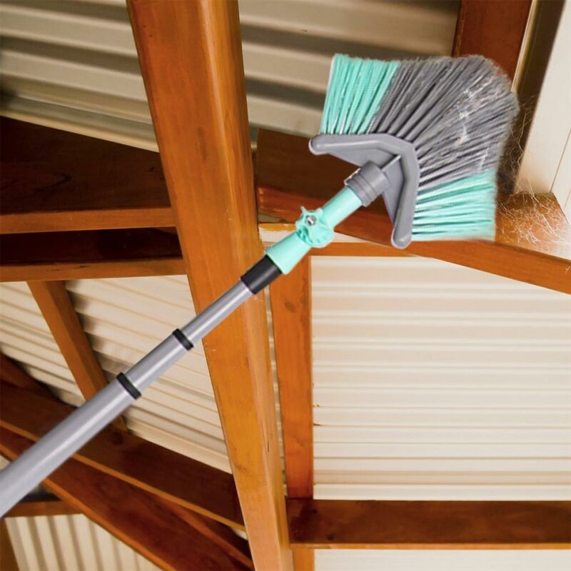 Rohový zmeták XXL vám pomôže s upratovaním pavučín a iných nečistôt v zle dostupných miestach. Kovová teleskopická tyč je tvorená z 3 dielov a dovoľuje tak dosiahnuť zmetákom až do vzdialenosti 3,75 m. V hornej časti je kefa, ktorou môžete ľubovoľne natáčať pomocou nastaviteľnej skrutky. Vďaka tvarovaniu kefy sa dostanete aj do rohov a horšie dostupných miest.