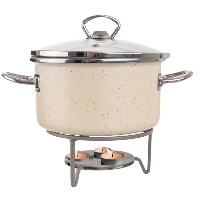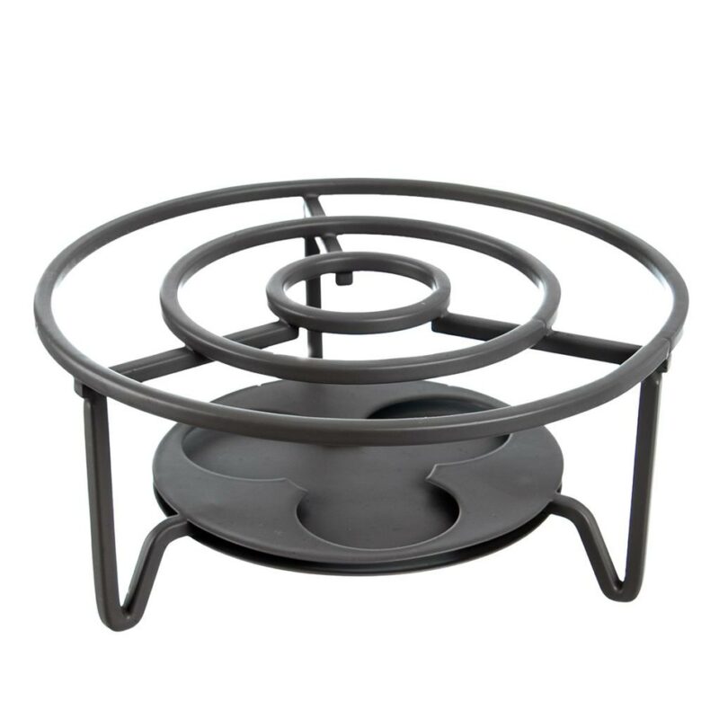 Kovový stojan ohrieva kanvice a hrnce pomocou čajových sviečok. Je určený predovšetkým na ohrievanie čaju v kanviciach a hrncoch z borosilikátového skla, vo varných hrnčekoch. Stojan nezaberá takmer žiadne miesto. Ohrejte si čaj či polievku kdekoľvek a kedykoľvek.