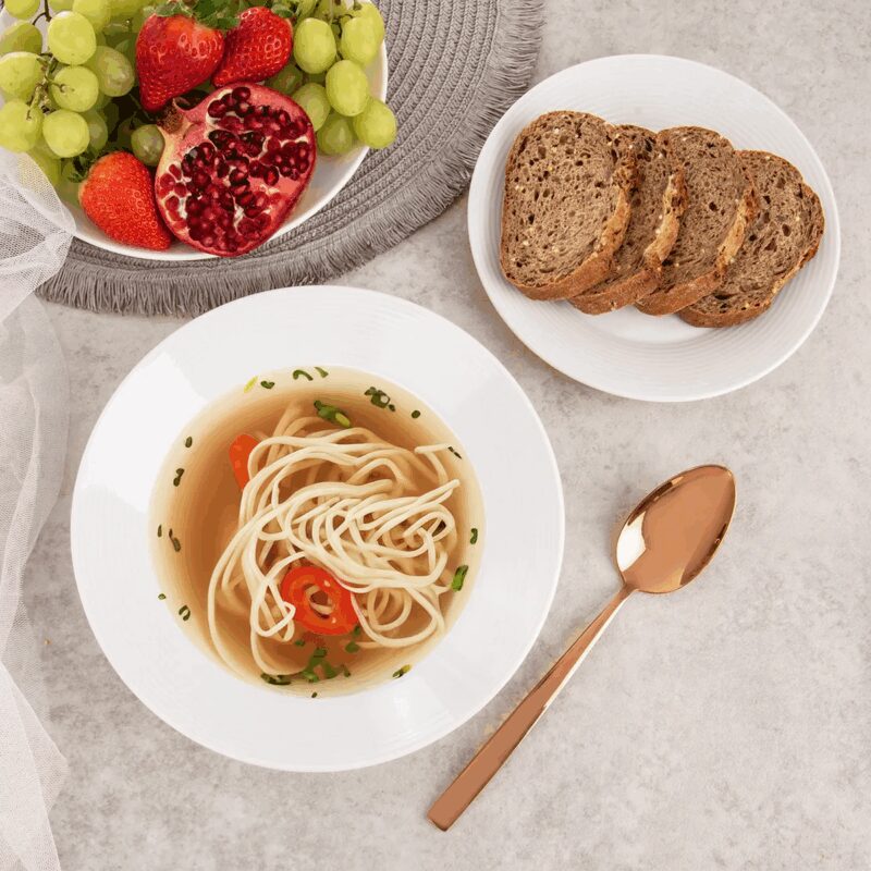 ideálny tvar a hĺbka na servírovanie polievok a omáčkových jedál