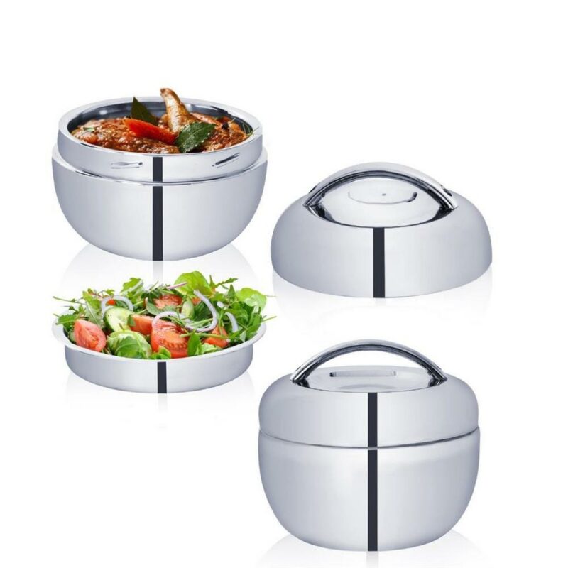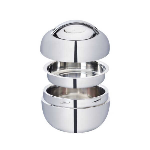Nehrdzavejúca termomisa Apple s objemom 1,3 l bude praktickým pomocníkom každej gazdinky. Vďaka dvojitej stene udrží konštantnú teplotu vloženého pokrmu dlhú dobu. Využijete ju pri servírovaní aj pre uchovanie teploty jedla. Vo vnútri sa nachádza nehrdzavejúca mištička – môžete uchovať potraviny i oddelene. Praktické ucho pre jednoduché prenášanie.Termo misy APPLE nemajú tesnenie, tzn. že netesnia 100% ako iné nádoby, dózy, ktoré sú opatrené tesnením. Jediné čo obmedzí vyliatie je vložená miska. Viď fotografie.