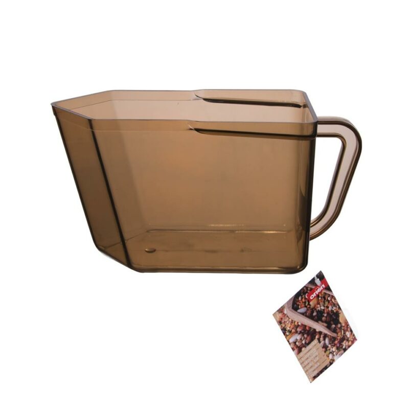 Táto dymovo sfarbená plastová zásobnica poslúži na tradičný spôsob ukladania sypkých potravín. Poznali ju už naše babičky, v kredenci do nich ukladali najpoužívanejšie suroviny na varenie a pečenie.Jej rozmery sú 19 x 10,5 x 12 cm, s držadlom 23 cm a hodí sa na uskladnenie múky, cukru, soli alebo cestovín. Dózu je možné v prípade potreby označiť samolepkami s popisom vloženej suroviny. Umývať v teplej vode so saponátom, nevhodné na umývanie v umývačke riadu.