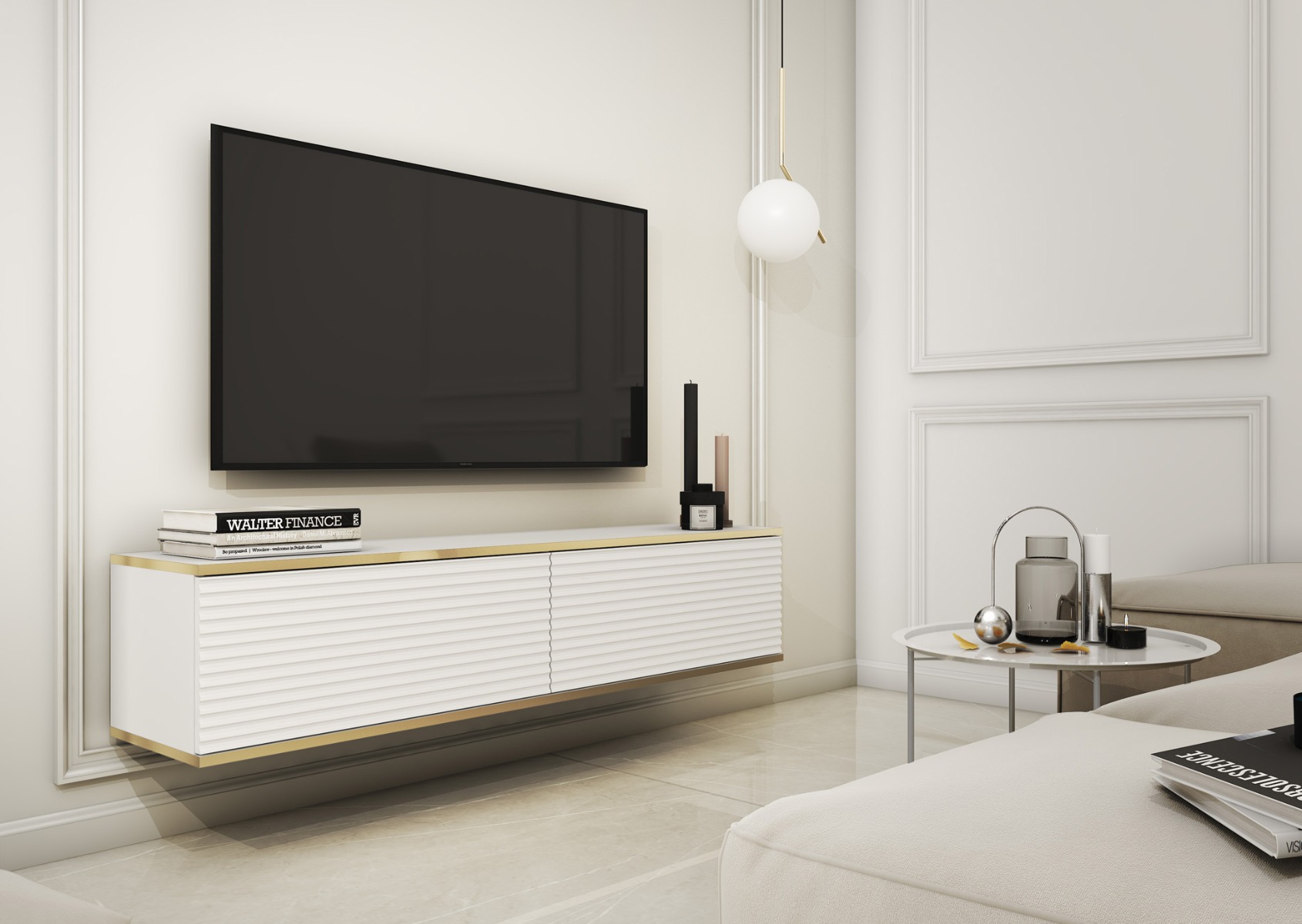 Moderný TV stolík ORLANDO sa stane pýchou každej obývačky. Zavesením na stenu v miestnosti pôsobí vzdušne a nadčasovo. Pre produkt boli použité módne farby a odolné materiály. Je vybavený dvoma priehradkami, ktoré poskytujú priestor pre rôzne typy elektronických zariadení a ďalšie príslušenstvo. Tiché a jemné otváranie dvierok zabezpečí push to open systém, stačí len zľahka zatlačiť na čelo nábytku. Zaujímavé drážkované predné čelá so zlatým lemovaním tento produkt odlišujú od ostatných TV stolíkov a v miestnosti tak pôsobí luxusne a štýlovo. Farebné prevedenie: bielaMateriál: MDF doska vystužená ABS hranouROZMERY: Hĺbka: 32 cmŠírka: 135 cmVýška: 30 cmDodávame v demonte.