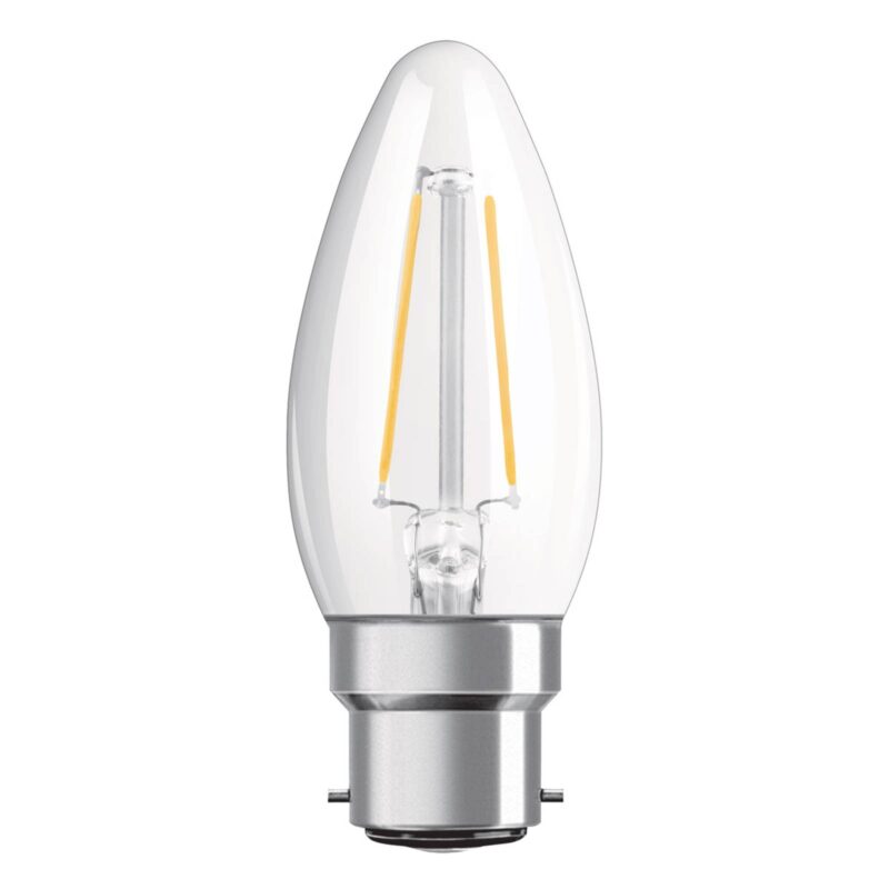 LED žiarovka B22d Star Classic B 2,5 W, teplá biela 2 700, vlákno Brilantné svetlo, vysoká energetická účinnosť, dlhá životnosť, rovnaké tvary a pätice – LED žiarovka B22d je oveľa viac ako náhrada za bežné halogénové alebo žiarovkové žiarovky. Táto sviečková lampa s čírou sklenenou žiarovkou a LED diódami usporiadanými v technológii žiaroviek vyzerá veľmi pekne napríklad v lustroch, kde svojím svetelným efektom a svietivosťou vhodne nahrádza 25W žiarovky. Technické údaje – 100 000 spínacích cyklov