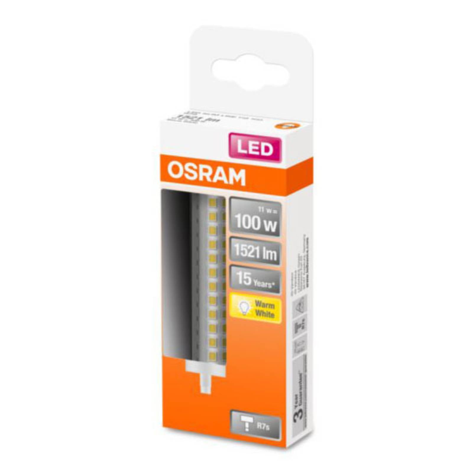 LED žiarovka R7s 11W od spoločnosti OSRAM s teplou bielou farbou svetla (2 700 K) – nie je stmievateľná