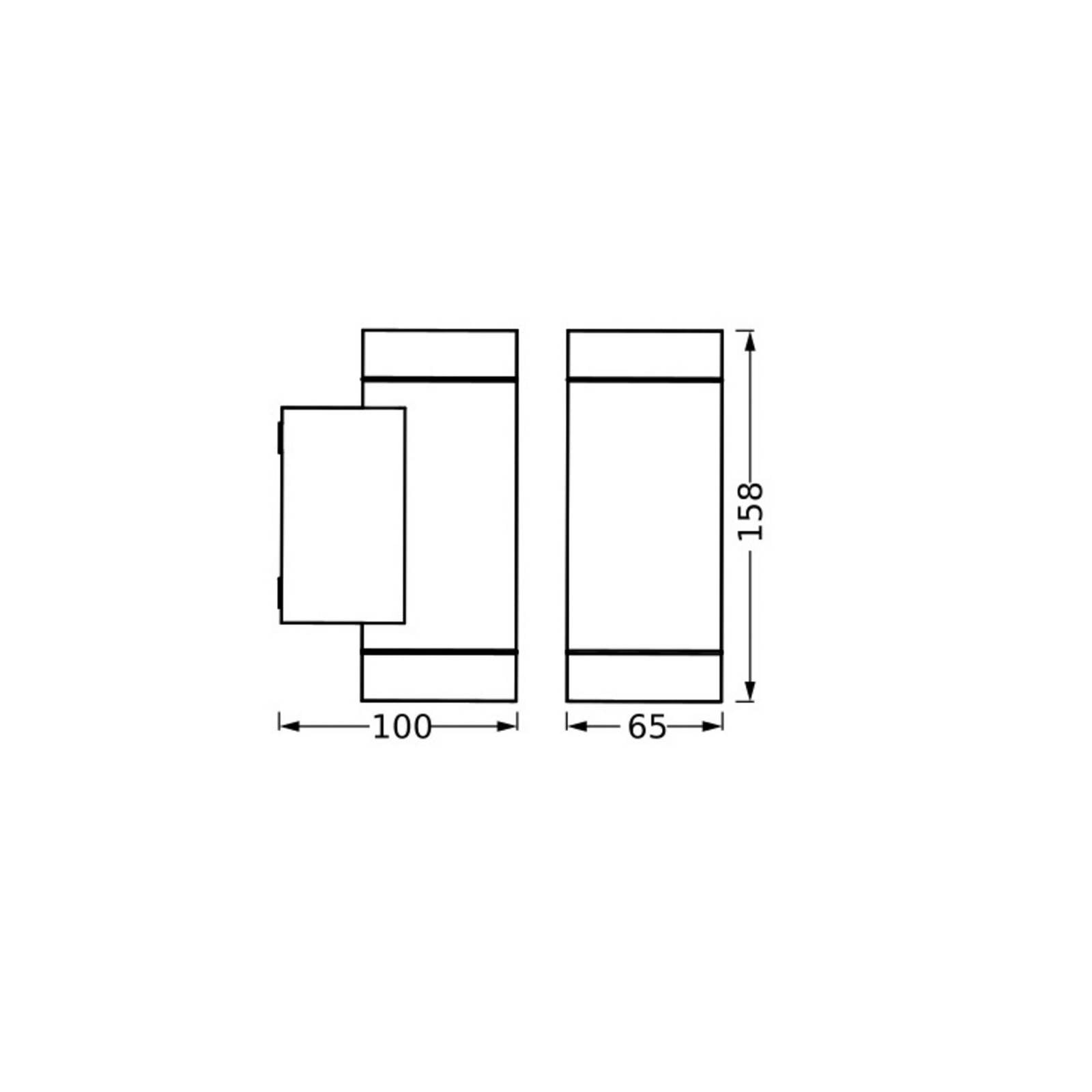 Nástenné svetlo s tmavosivým telom z tlakovo liateho hliníka, stupňom ochrany krytom IP65, matným difúzorom a päticou G10. Vlastnosti produktu: K dispozícii sú varianty s PIR snímačom pohybu a senzorom denného svetla. Nepriame osvetlenie. Telo z tlakovo liateho hliníka. Difúzor zo skla alebo PMMA. Farba puzdra: antracitová. Výhody produktu: Vysoká flexibilita pri výbere žiarovky vďaka pätici GU10. Jednoduchá a rýchla inštalácia. Oblasti použitia: Osvetlenie fasád. Osvetlenie vchodov. Terasy, balkóny. Osvetlenie chodníkov. Príjazdové cesty. Technické vybavenie: Kompletný montážny a pripojovací materiál je súčasťou balenia. Žiarovky nie sú súčasťou balenia. Bezpečnostné pokyny: Všetky elektrické pripojenia smie vykonávať iba kvalifikovaný odborný personál. Pozor, nebezpečenstvo úrazu elektrickým prúdom. Produkt triedy ochrany I. Všetky elektricky vodivé kovové časti puzdra, ktoré môžu pri prevádzke alebo údržbe v prípade poruchy prijať napätie, musia byť priebežne pripojené k ochrannému vodiču.