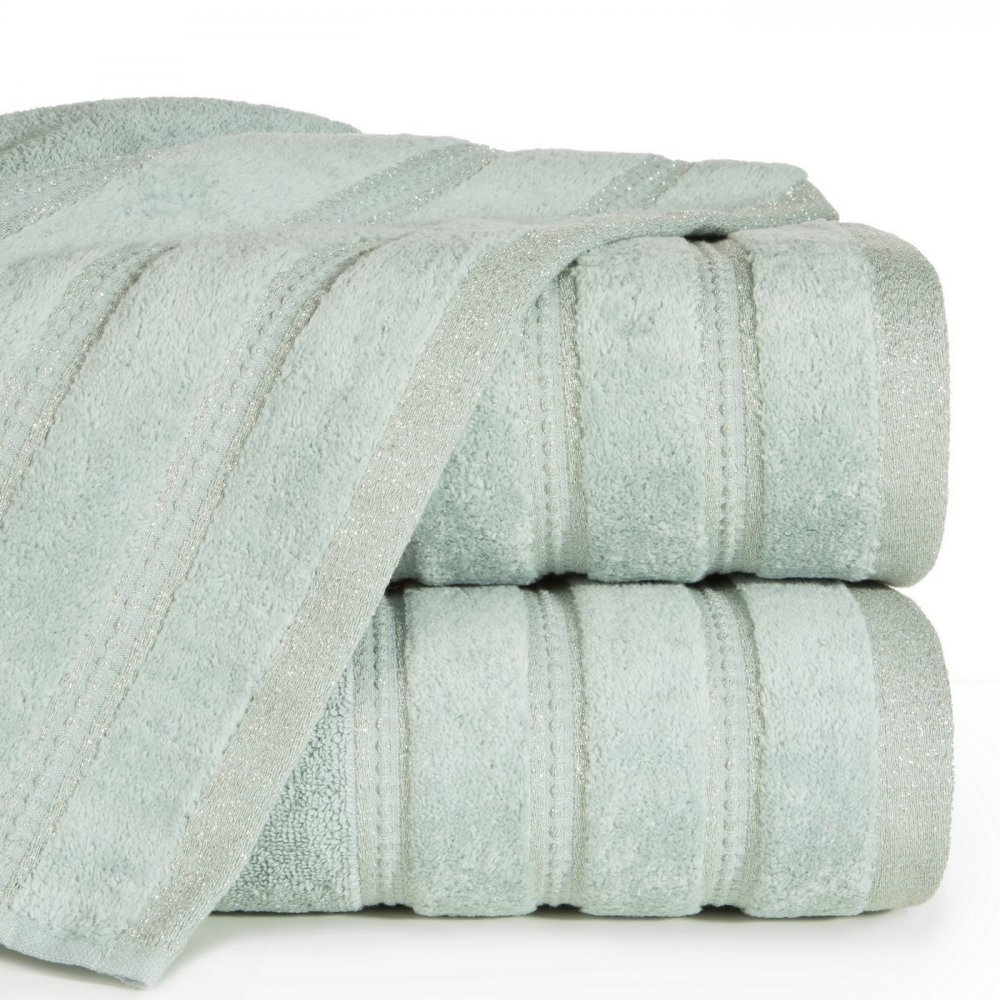Osuška GLORY v jemnej zelenej farbe, s velúrovým okrajom a lesklou niťou Šírka: 50 cm | Dĺžka: 90 cm