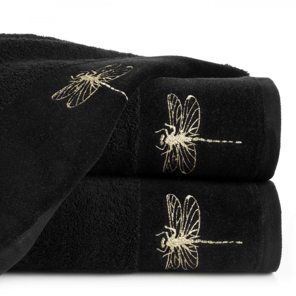 Osuška v čiernej farbe s výšivkou vážky prešívanou zlatou niťou Šírka: 50 cm | Dĺžka: 90 cm