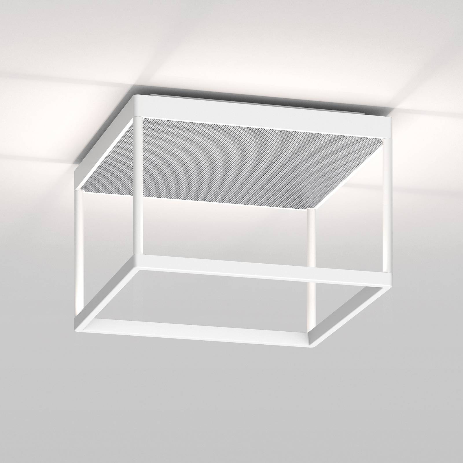 Moderný svetelný zdroj v tvare otvorenej kocky: stropné svietidlo Reflex² M LED v základnej veľkosti 30 cm x 30 cmTak ako všetky svietidlá radu Reflex², aj táto verzia so základňou vo veľkosti M sa vyznačuje geometrickým, otvoreným dizajnom otvorenej kocky z hliníkových vzpier. Tie majú LED diódy integrované za plochým sklom na hornej strane spodnej časti. Svetlo vyžarované doširoka nahor osvetľuje strop dookola a dopadá aj na centrálny štvorcový reflektor vyrobený z hranolového plexiskla. Reflex² M presvedčí nielen príjemným nepriamym svetlom, ale aj kvalitou inštalovaných LED diód, ktorých teplé biele svetlo mimoriadne dobre odráža farby okolia. Jas je možné nastaviť externe pomocou triakového stmievača. Za dizajn je zodpovedný Jean-Marc da Costa, jeden zo zakladateľov a výkonných riaditeľov výrobcu serien.lighting.