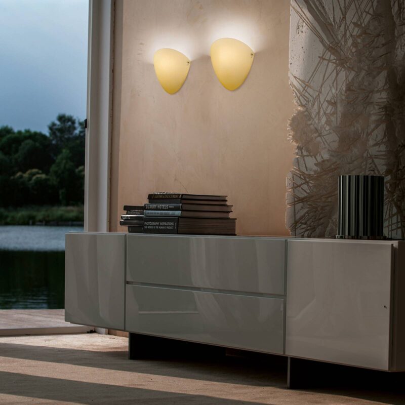 Nástenné svietidlo Ovalina z fúkaného sklaNástenné svietidlo Ovalina zaujme nevtieravým šarmom. Jej tienidlo vyrobené z lešteného skla fúkaného ústami poskytuje optimálnu platformu pre vyžarované svetlo. Dodáva mu neporovnateľne teplú žiaru a vzniká veľmi príjemné ambientné osvetlenie, ktoré zároveň vnáša do miestnosti útulnú atmosféru. akcentový zdroj svetla, ktorý sa svojou nenápadnou krásou prispôsobí mnohým štýlom bývania. dizajn: štúdio tecnico Vetreria Vistosi- s fúkaným, viacvrstvovým sklom