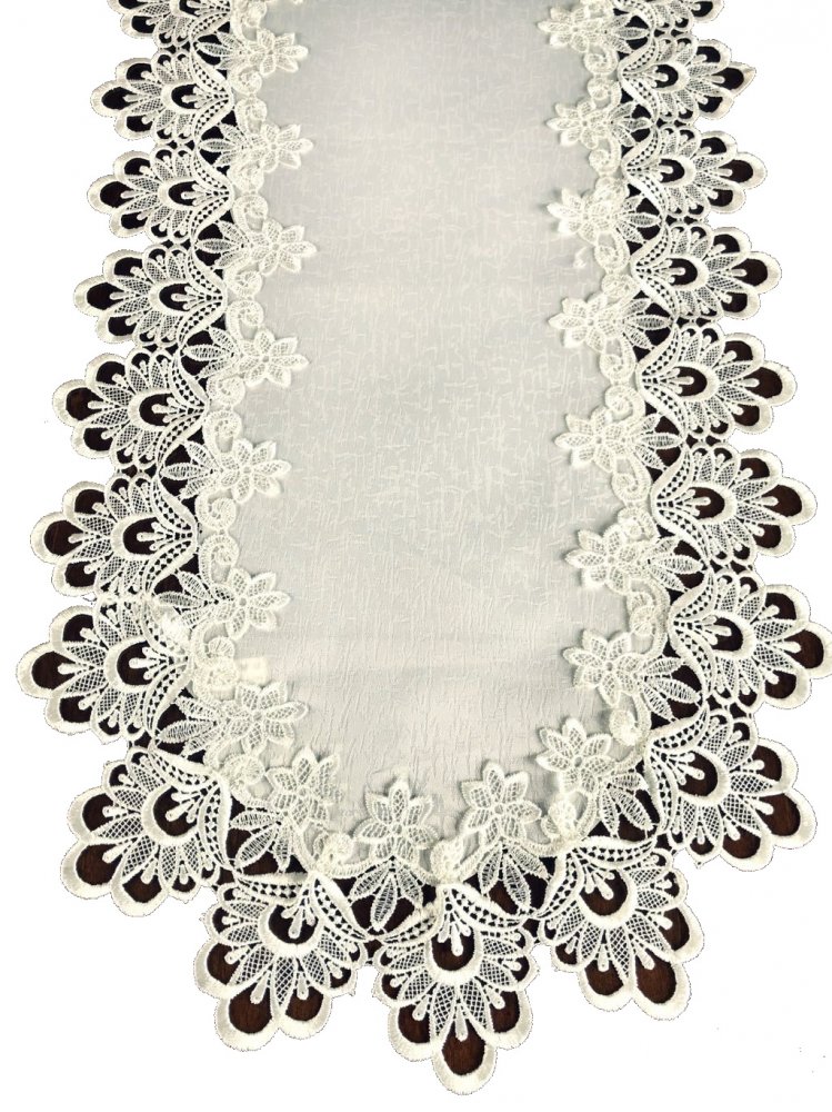 Oválny krémový obrus zdobený krajkou Šírka: 60 cm | Dĺžka: 120 cm
