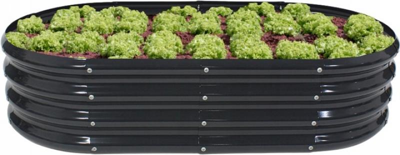 Oválny plechový vyvýšený záhon v antracitovej farbe 240 x 120 x 30 cm