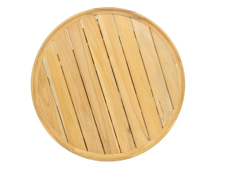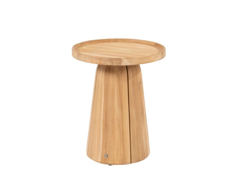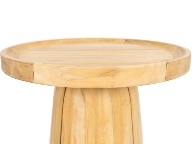 Moderný príručný stolík Pablo z teakového dreva pekne zapadne na záhradnej terase.