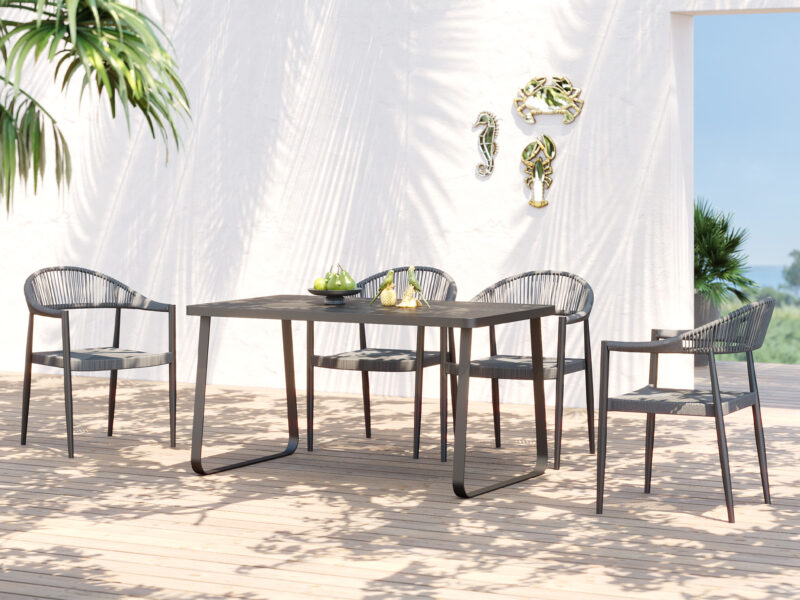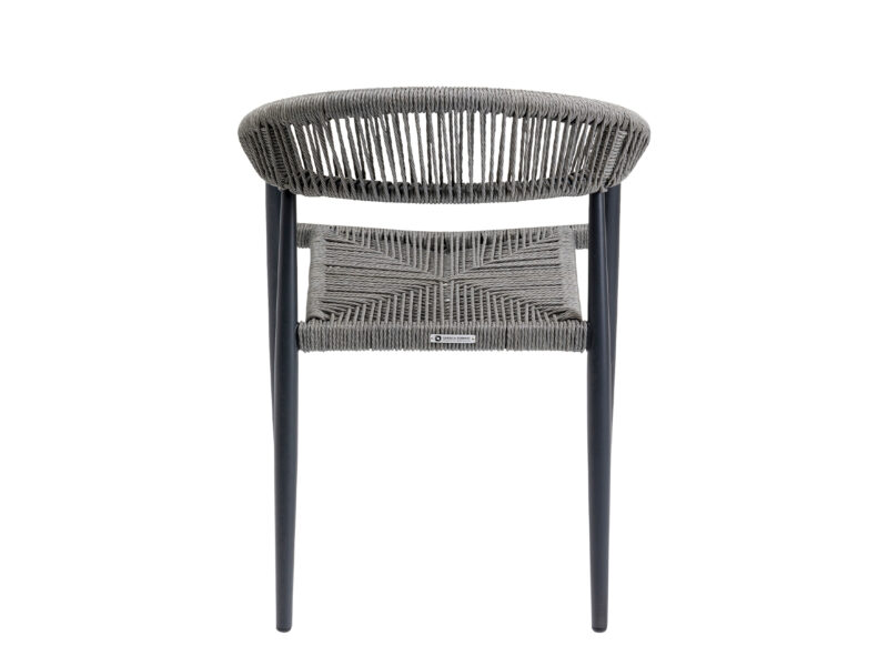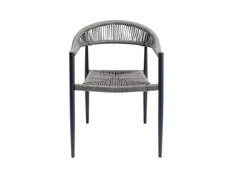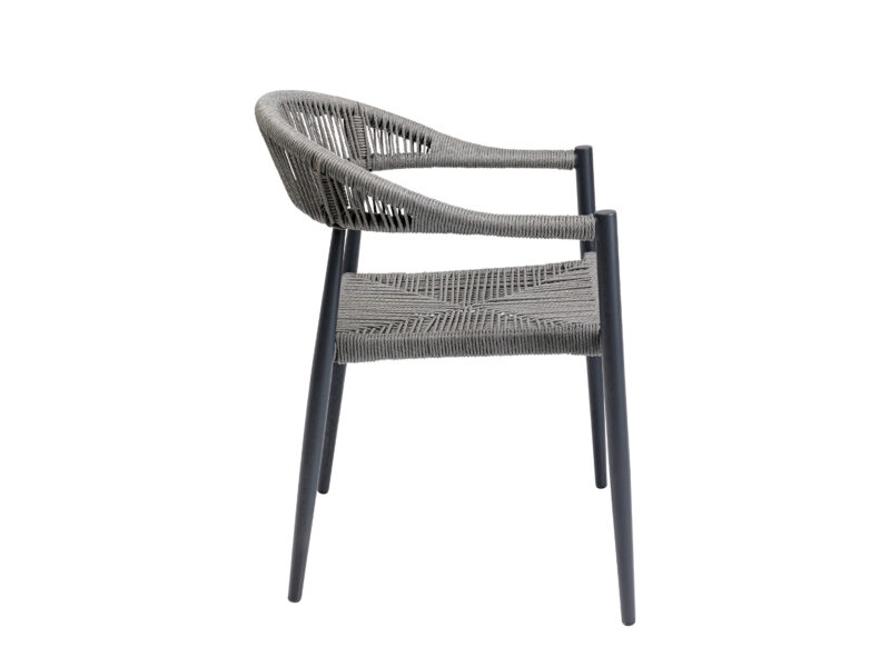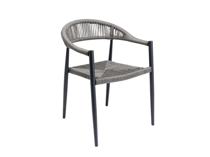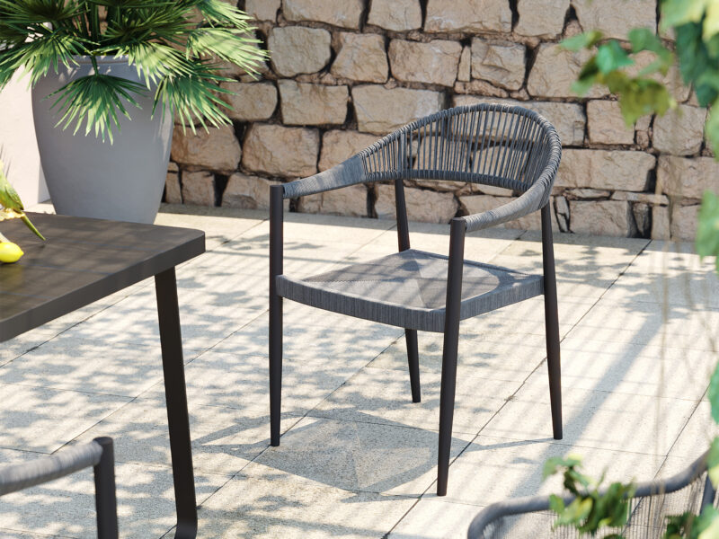 Sivá stolička Palma s vypletaným sedadlom a hliníkovým rámom je ideálnou voľbou pre elegantné a odolné sedenie nielen na terase či balkóne, ale aj v interiéri.
