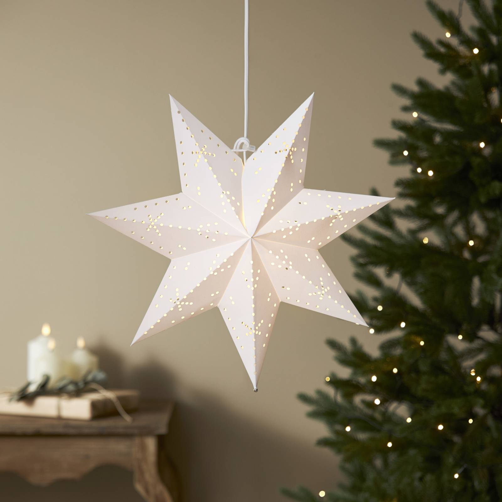 Papierová hviezda Classic s objímkou E14, biela