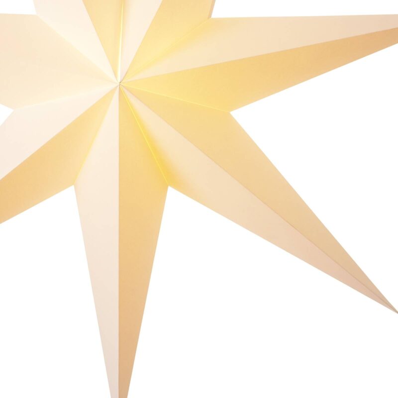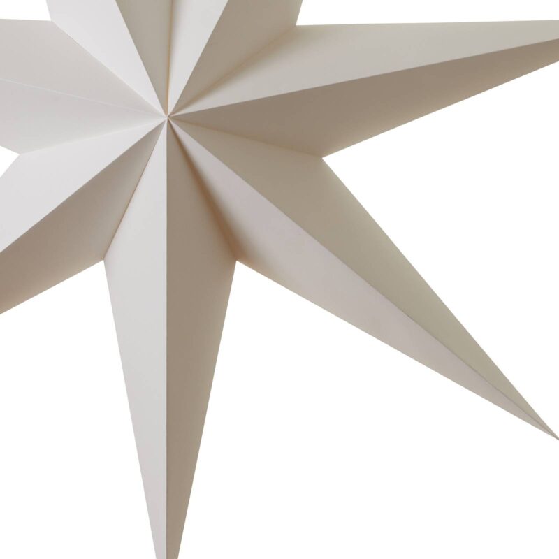 Neprehliadnuteľné s priemerom 100 cm: sedemcípa papierová hviezda Duva Veľkosť je veľmi pôsobivá, má priemer jeden meter a robí z nej bielu papierovú hviezdu Duva z. B. k dobre viditeľnej okennej výzdobe vo vianočnom období. Vďaka nadčasovému dizajnu sa Duva hodí do každého životného prostredia – vianočná dekorácia, ktorá každý rok prináša radosť. Hviezda je vybavená 3,5 m dlhým vedením. Prepínač je súčasťou balenia.