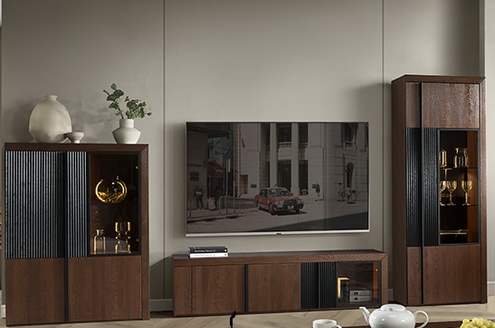 Sektorový nábytok PARADISE vás zaujme svojim jedinečných vzhľadom a štýlovým prevedením. Jednotlivé prvky tohto unikátneho sektoru spolu vynikajúco ladia a urobia z vašej obývačky útulný a teplý domov. Predná časť nábytku je vyrobená z kvalitného dubového masívu s frézovanými časťami. Zadný korpus je z dyhovanej dosky. Nábytok je lakovaný v prírodnej farbe. Vďaka tomu zaručí čo najdlhšiu životnosť. Pánty majú tiché dovieranie. Úchytky sú v čiernej farbe. Sú vyrobené z kovu.Obývacia zostava sa skladá:PARADISE 10 vysoká vitrína – rozmery (š,v,h): 75 x 202 x 42 cm,PARADISE 15 dvojdverová vitrína – rozmery (š,v,h): 106 x 114 x 42 cm,PARADISE 25 TV stolík – rozmery (š,v,h): 180 x 47 x 42 cm.V ponuke aj ďalšie prvky sektoru